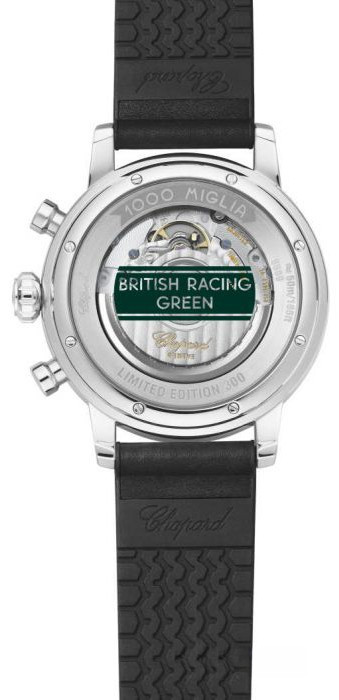 Дом Chopard, вот уже 30 лет являющийся партнером и официальным хронометристом «самой красивой автогонки в мире», представляет коллекцию часов с автоматическим заводом Mille Miglia Racing Colours. Стильный винтажный корпус модели вдохновлен дизайном автомобилей, с 1927 по 1940 годы участвовавших в знаменитой гонке Mille Miglia. Его дополняет циферблат особого зеленого цвета – таким образом Chopard отдает дань традиции автоспорта, ассоциирующей каждую страну с определенным цветом. Oсобенностью коллекции Mille Miglia Racing Colours, выпущенной ограниченной серией в 300 экземпляров, также является новый кожаный ремешок с подкладкой из каучука и прошивкой в тон циферблата.