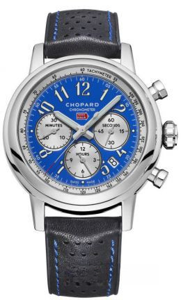 Дом Chopard, вот уже 30 лет являющийся партнером и официальным хронометристом «самой красивой автогонки в мире», представляет коллекцию часов с автоматическим заводом Mille Miglia Racing Colours. Стильный винтажный корпус модели вдохновлен дизайном автомобилей, с 1927 по 1940 годы участвовавших в знаменитой гонке Mille Miglia. Его дополняет циферблат особого синего цвета Vintage Blue – таким образом Chopard отдает дань традиции автоспорта, ассоциирующей каждую страну с определенным цветом. Oсобенностью коллекции Mille Miglia Racing Colours, выпущенной ограниченной серией в 300 экземпляров, также является новый кожаный ремешок с подкладкой из каучука и прошивкой в тон циферблата.