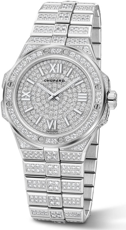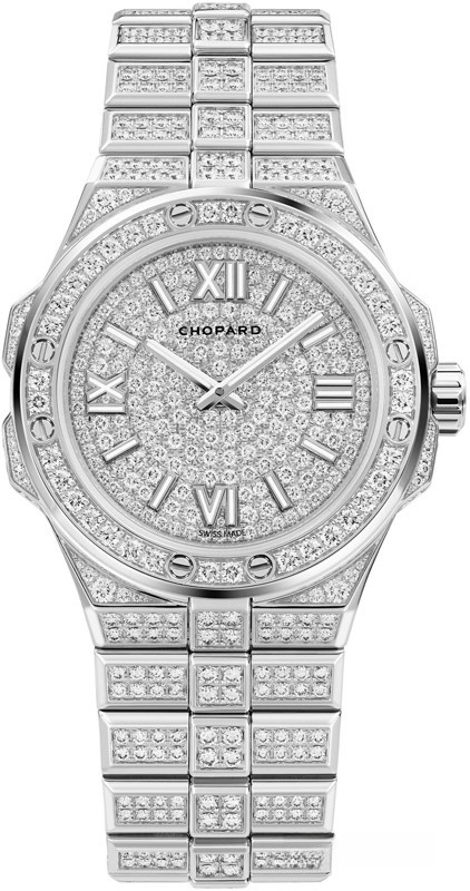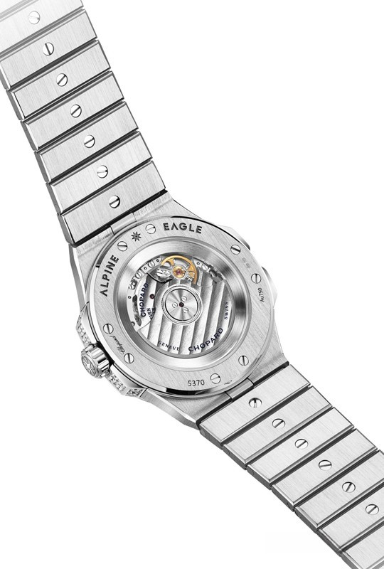 Актуальные, изысканные и выразительные, новые модели Alpine Eagle в стиле спортивный шик являются современной версией первых наручных часов St Moritz, созданных в 1980 году Карл-Фридрихом Шойфеле, сопрезидентом Дома Chopard в настоящее время. Он лично придумал и разработал дизайн часов Alpine Eagle, движимый безграничной любовью к Альпам и вдохновленный величественным образом безраздельно властвующего в альпийском небе орла. Часы из белого золота 18к оснащены механизмом, прошедшим сертификацию хронометра. Alpine Eagle – это посвящение современным орлам, целеустремленным людям, которые каждый день превосходят самих себя и вдохновляют своим мировоззрением. Наделенные неординарной проницательностью и решимостью, они работают над вызовами завтрашнего дня, глубоко осознавая необходимость борьбы за сохранение нашей планеты. Полностью разработанный и изготовленный в часовых мастерских Chopard, механический калибр с автоматическим заводом Chopard 09.01-C прошел сертификацию хронометра COSC и работает с частотой 25 200 полуколебаний в час. Благодаря 42-часовому запасу хода он обеспечивает показания часов, минут и секунд в характерной для Chopard элегантной манере. Корпус инкрустирован белыми бриллиантами.
