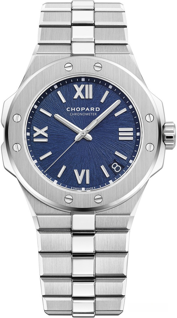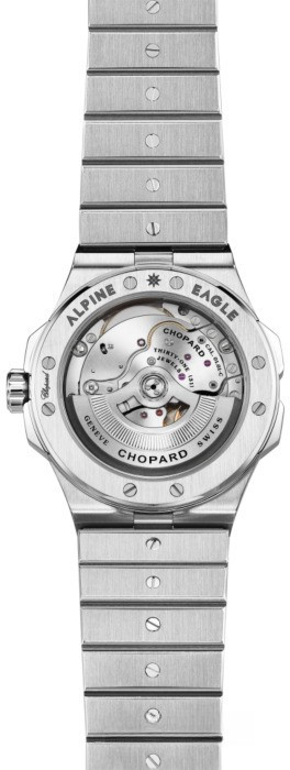 Актуальные, изысканные и выразительные, новые модели Alpine Eagle в стиле спортивный шик являются современной версией первых наручных часов St Moritz, созданных в 1980 году Карл-Фридрихом Шойфеле, сопрезидентом Дома Chopard в настоящее время. Он лично придумал и разработал дизайн часов Alpine Eagle, движимый безграничной любовью к Альпам и вдохновленный величественным образом безраздельно властвующего в альпийском небе орла. Часы из высокопрочной светоотражающей эксклюзивной стали Lucent A223 оснащены механизмом, прошедшим сертификацию хронометра. Alpine Eagle – это посвящение современным орлам, целеустремленным мужчинам, которые каждый день превосходят самих себя и вдохновляют своим мировоззрением. Наделенные неординарной проницательностью и решимостью, они работают над вызовами завтрашнего дня, глубоко осознавая необходимость борьбы за сохранение нашей планеты. Полностью разработанный и изготовленный в часовых мастерских Chopard, механический калибр с автоматическим заводом Chopard 01.01-C прошел сертификацию хронометра COSC и работает с частотой 28 800 полуколебаний в час. Благодаря 60-часовому запасу хода и функции остановки секундной стрелки он с безупречной точностью обеспечивает показания часов, минут, секунд и даты в характерной для Chopard элегантной манере.