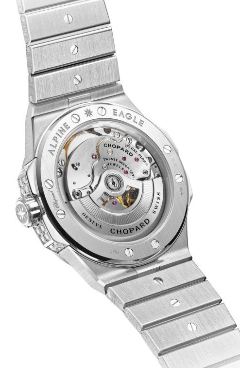 Актуальные, изысканные и выразительные, новые модели Alpine Eagle в стиле спортивный шик являются современной версией первых наручных часов St Moritz, созданных в 1980 году Карл-Фридрихом Шойфеле, сопрезидентом Дома Chopard в настоящее время. Он лично придумал и разработал дизайн часов Alpine Eagle, движимый безграничной любовью к Альпам и вдохновленный величественным образом безраздельно властвующего в альпийском небе орла. Часы из белого золота 18к оснащены механизмом, прошедшим сертификацию хронометра. Alpine Eagle – это посвящение современным орлам, целеустремленным мужчинам, которые каждый день превосходят самих себя и вдохновляют своим мировоззрением. Наделенные неординарной проницательностью и решимостью, они работают над вызовами завтрашнего дня, глубоко осознавая необходимость борьбы за сохранение нашей планеты. Полностью разработанный и изготовленный в часовых мастерских Chopard, механический калибр с автоматическим заводом Chopard 01.03-C прошел сертификацию хронометра COSC и работает с частотой 28 800 полуколебаний в час. Благодаря 60-часовому запасу хода и функции остановки секундной стрелки он с безупречной точностью обеспечивает показания часов, минут, секунд и даты в характерной для Chopard элегантной манере.