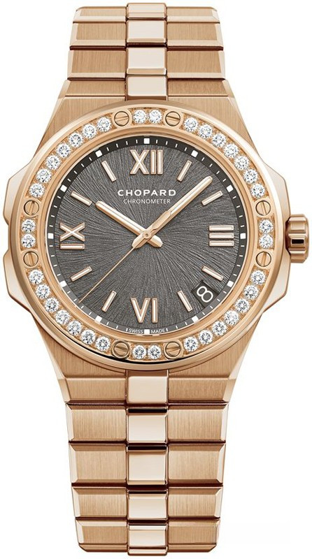 Актуальные, изысканные и выразительные, новые модели Alpine Eagle в стиле спортивный шик являются современной версией первых наручных часов St Moritz, созданных в 1980 году Карл-Фридрихом Шойфеле, сопрезидентом Дома Chopard в настоящее время. Он лично придумал и разработал дизайн часов Alpine Eagle, движимый безграничной любовью к Альпам и вдохновленный величественным образом безраздельно властвующего в альпийском небе орла. Часы из розового золота 18к оснащены механизмом, прошедшим сертификацию хронометра. Alpine Eagle – это посвящение современным орлам, целеустремленным мужчинам, которые каждый день превосходят самих себя и вдохновляют своим мировоззрением. Наделенные неординарной проницательностью и решимостью, они работают над вызовами завтрашнего дня, глубоко осознавая необходимость борьбы за сохранение нашей планеты. Полностью разработанный и изготовленный в часовых мастерских Chopard, механический калибр с автоматическим заводом Chopard 01.01-C прошел сертификацию хронометра COSC и работает с частотой 28 800 полуколебаний в час. Благодаря 60-часовому запасу хода и функции остановки секундной стрелки он с безупречной точностью обеспечивает показания часов, минут, секунд и даты в характерной для Chopard элегантной манере.