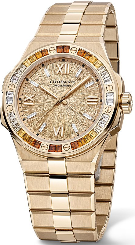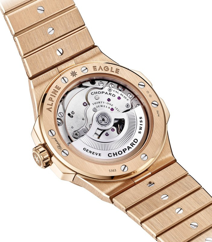 Актуальные, изысканные и выразительные, новые модели Alpine Eagle в стиле спортивный шик являются современной версией первых наручных часов St Moritz, созданных в 1980 году Карл-Фридрихом Шойфеле, сопрезидентом Дома Chopard в настоящее время. Он лично придумал и разработал дизайн часов Alpine Eagle, движимый безграничной любовью к Альпам и вдохновленный величественным образом безраздельно властвующего в альпийском небе орла. Часы из розового золота 18к оснащены механизмом, прошедшим сертификацию хронометра. Alpine Eagle – это посвящение современным орлам, целеустремленным мужчинам, которые каждый день превосходят самих себя и вдохновляют своим мировоззрением. Наделенные неординарной проницательностью и решимостью, они работают над вызовами завтрашнего дня, глубоко осознавая необходимость борьбы за сохранение нашей планеты. Полностью разработанный и изготовленный в часовых мастерских Chopard, механический калибр с автоматическим заводом Chopard 01.15-C прошел сертификацию хронометра COSC и работает с частотой 28 800 полуколебаний в час. Благодаря 60-часовому запасу хода и функции остановки секундной стрелки он с безупречной точностью обеспечивает показания часов, минут, секунд и даты в характерной для Chopard элегантной манере.