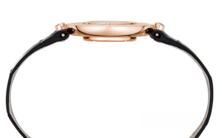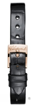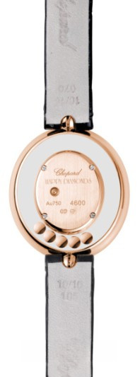 Корпус часов Chopard Happy Diamonds изготовлен из розового золота 18к. Размер корпуса 28.8 х 25.8 мм, водонепроницаемость до 30 м. Циферблат белый жемчужный гильошированный с 5-ю плавающими белыми бриллиантами. На нем отображаются часы, минуты. Часы комплектуются кварцевым механизмом. Поставлется на ремешке из кожи аллигатора с вставкой из розового золота 18к. Циферблат украшают 5 плавающих белых бриллиантов.