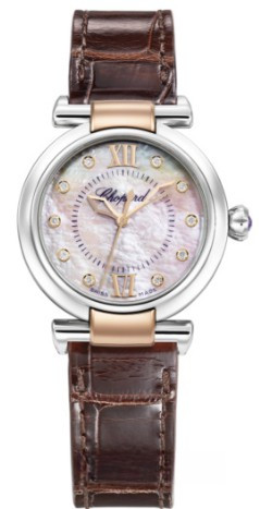 Достойное украшение для Королевы наших дней, эти изящные часы с автоматическим заводом из нержавеющей стали и розового золота 18к отличаются грациозной утонченностью, свойственной коллекции Imperiale. Неподвластная времени элегантность лаконичного циферблата из перламутра, корпус биколор, ремешок из кожи аллигатора подчеркивают спокойную уверенность в себе, присущую обладательнице часов.