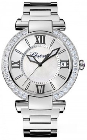 Лаконичность скульптурного дизайна этих часов IMPERIALE с автоматическим заводом эффектно дополняет драгоценный блеск бриллиантов на ободке. Изысканно изогнутые стрелки в стиле ампир ведут отсчет времени на серебристом циферблате с перламутровым элементом в центре и величественными римскими цифрами. Благородный блеск украсившего заводную коронку аметиста в форме кабошона напоминает пурпурное убранство византийского императорского двора. Корпус часов дополняет стальной браслет из нержавеющей стали.