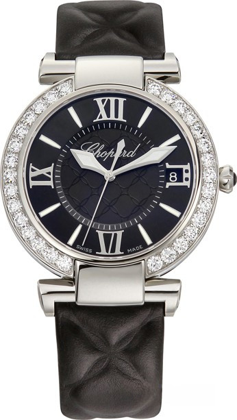 Выполненная из нержавеющей стали модель IMPERIALE с украшенным бриллиантами ободком и автоматическим заводом является эталоном утонченного дизайна. В центре современного черного матового циферблата выгравирован знаменитый узор IMPERIALE, который также украшает ремешок из кожи черного цвета. Элегантные стрелки и величественные римские цифры ведут отсчет времени, а изысканный кабошон из оникса на заводной коронке придает модели удивительную утонченность.