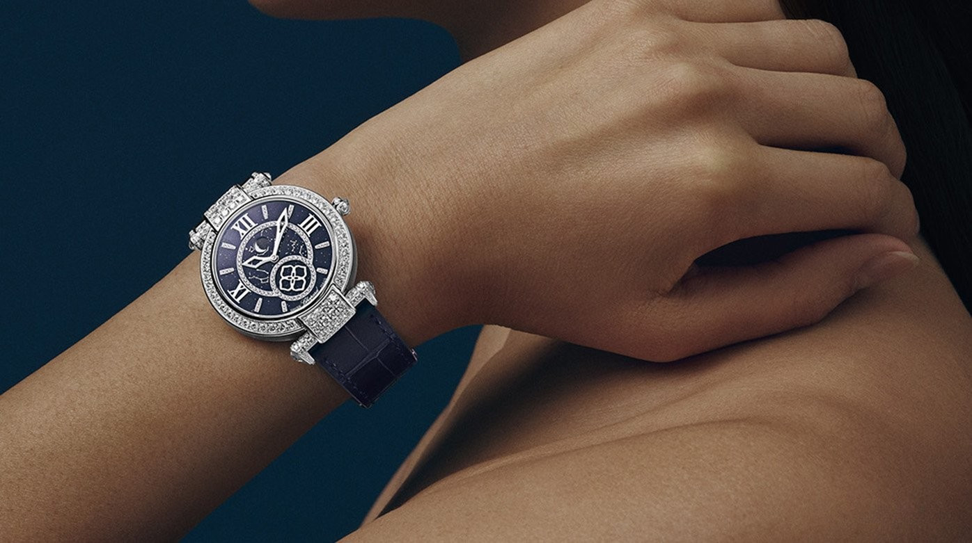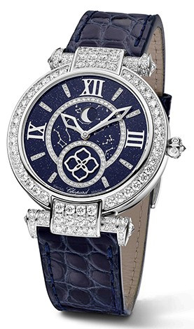 Часы Chopard Imperiale Moonphase – высшее воплощение романтизма и женской элегантности. Луна и звезды на искусно выполненном циферблате приглашают в поэтическое путешествие, сопровождаемое мерцающими нюансами синего авантюрина в блеске бриллиантов. Великолепные как внутри – благодаря механизму Chopard 96.25-C – так и снаружи, часы Imperiale Moonphase воспевают грациозную женственность.