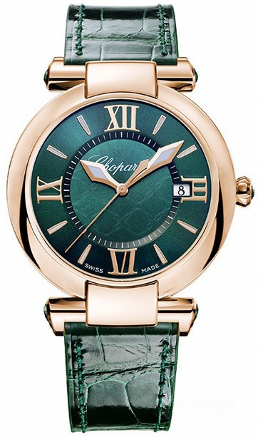 Искусное чередование прямых и изогнутых линий подчеркивает утонченную элегантность часов IMPERIALE. Корпус из розового золота 750 пробы, а также циферблат и ремешок из кожи насыщенного зеленого цвета придают этим часам истинную величественность. Ушки корпуса и заводная коронка изысканно украшены турмалинами.
