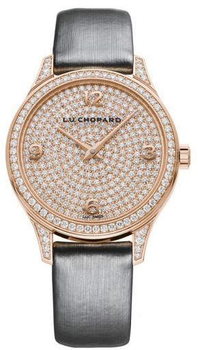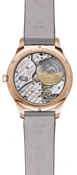 Часы Chopard L.U.C XP 35 mm представлены в корпусе размером 35 х 7.5 мм из розового золота 18к водонепроницаемостью 30 метров. Внутри корпуса установлен автоматический механизм, Калибр 96.17-L, сертифицированный хронометр COSC, обладающий запасом хода 65 часов. На циферблате из белых бриллиантов отображаются часы и минуты. Часы поставляются на сатиновом ремешке с вставкой из розового золота 18к. Корпус инкрустирован белыми бриллиантами.
