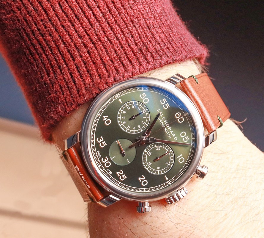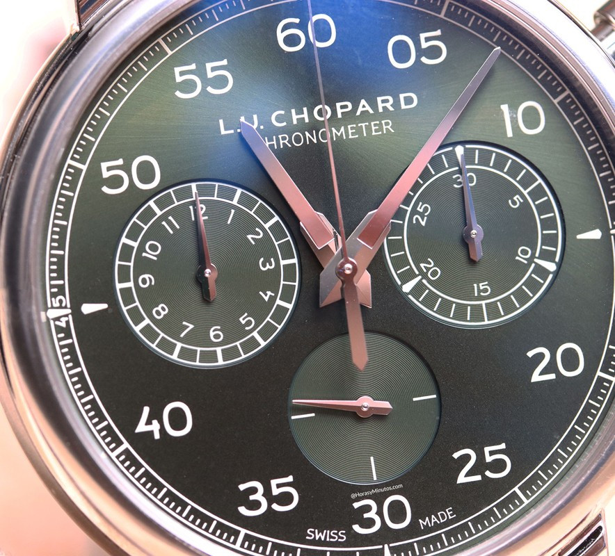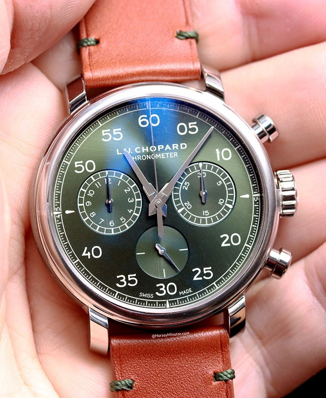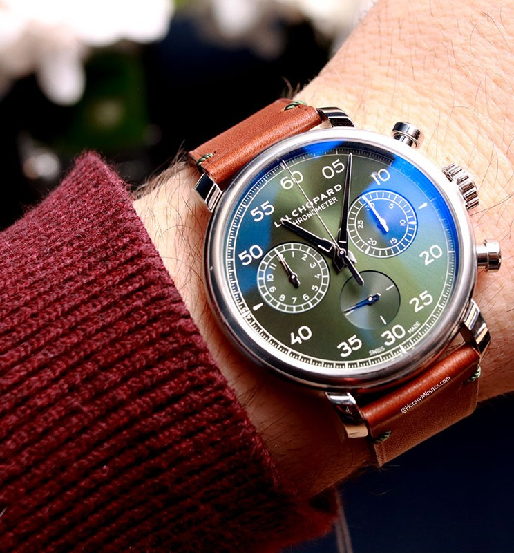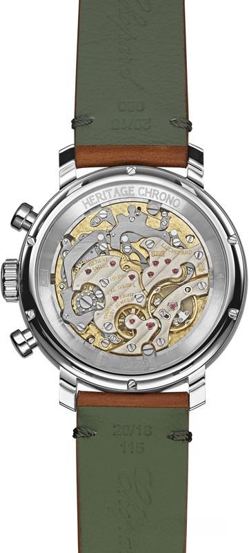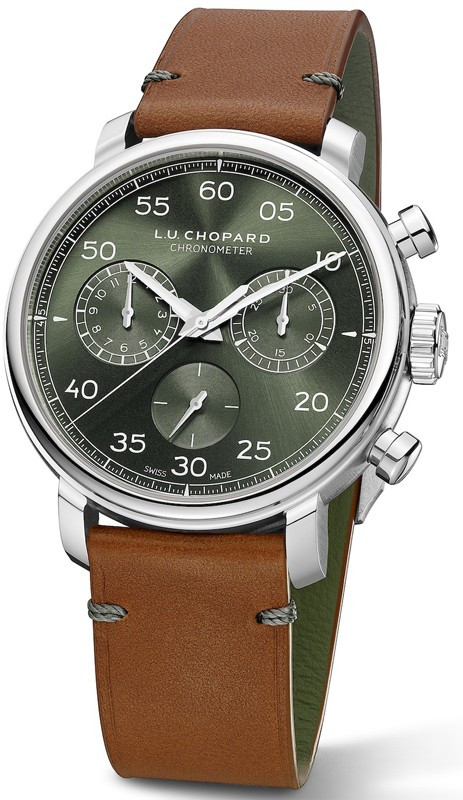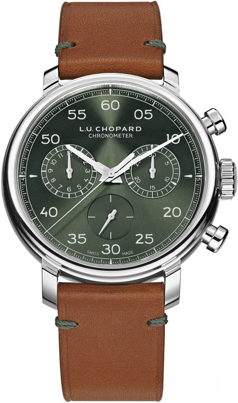 Часы Chopard L.U.C 1963 Heritage Chronograph представлены в корпусе размером 42 мм из нержавеющей стали водонепроницаемостью 30 метров. Внутри корпуса установлен механизм с ручным заводом, Калибр Chopard 03.07-L, обладающий запасом хода 42 часа. На зеленом циферблате отображаются часы, минуты, секунды. Часы поставляются на кожаном ремешке с застежкой из нержавеющей стали. Серия ограничена - 25 шт.