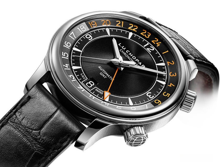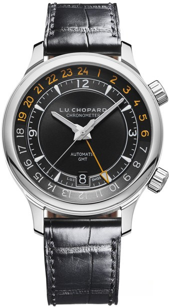 Часы Chopard L.U.C GMT One представлены в корпусе из нержавеющей стали размером 42 мм и водонепроницаемостью до 30 метров. Внутри корпуса установлен автоматический механизм L.U.C 01.10-L с запасом хода 60 часов. На черном циферблате отображаются часы, минуты, секунды, дата. Часы комплектуются ремешком из кожи аллигатора с вставкой из нержавеющей стали. Механизм усложнен функцией второго часового пояса, и является официально сертифицированным хронометром COSC.