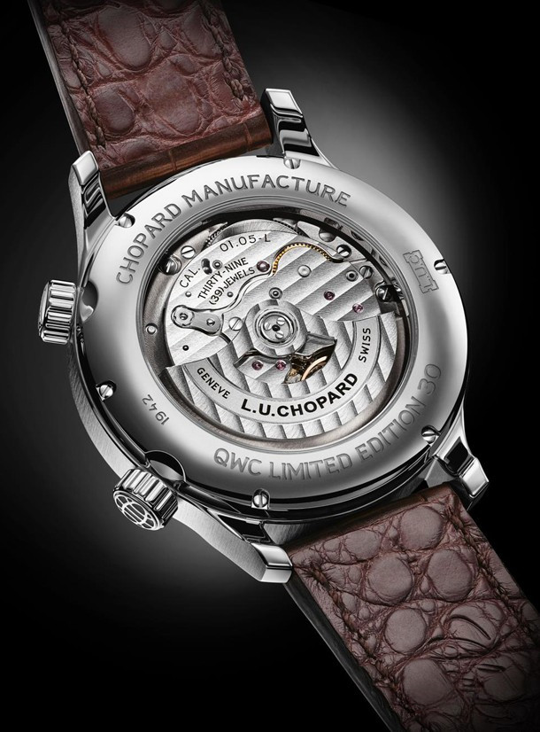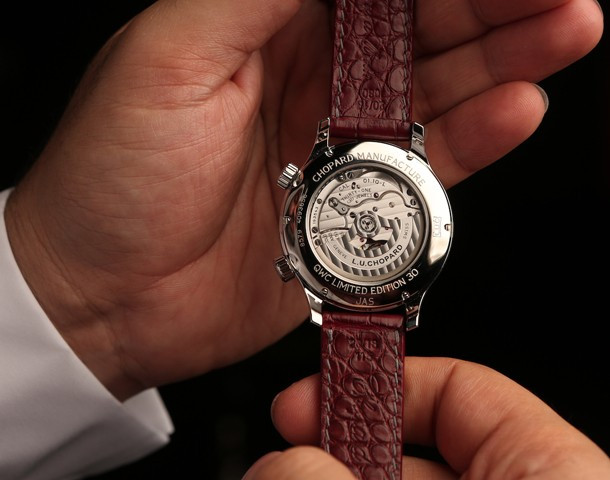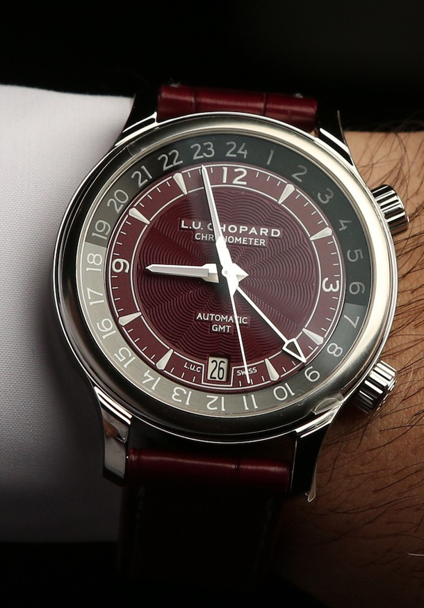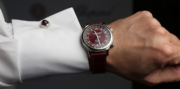 Chopard L.U.C GMT One – часы, выпущенные в честь первой годовщины существования Катарского часового клуба в Дохе. Сообществу любителей часов в маленькой стране Персидского залива исполнился год. В дизайне часов использовался цвет национального флага Катара – благородный бордовый. Часы в стальном корпусе обладают бордовым гильошированным циферблатом. Часы с функцией GMT выпущены ограниченной серией 30 штук. Внешний фланец циферблата объединяет в себе 24-часовой индикатор дня/ночи и представлен в двух оттенках серого. Стрелка GMT темно-серого цвета с черным наконечником, заполненным люминофором. Корпус часов Chopard L.U.C GMT One Limited Edition обладает размером 42 х 11.71 мм. Сквозь прозрачную заднюю крышку корпуса можно видеть механизм L.U.C 01.10-L с балансовой частотой 28 800 пк/час и 60-часовым запасом хода. Новинка (реф. 168579-3002) поставляется на ремешке из кожи аллигатора со стальной застежкой.