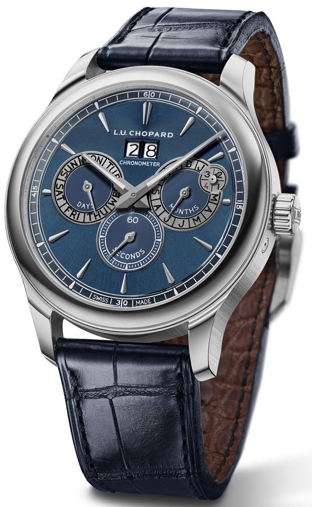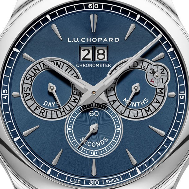 Модель L.U.C Perpetual Twin в 43-миллиметровом корпусе из нержавеющей стали служит примером механической сложности и совершенства, которыми славится Chopard: ее механизм оснащен функцией вечного календаря, который без вмешательства человека определяет количество дней в месяце (28, 29, 30 и 31) и осуществляет корректировку даты. Благодаря микроротору и двум последовательно расположенным заводным барабанам (запатентованная технология Twin®) этот Калибр обеспечивает комфортный запас хода 65 часов. Его хронометрическая точность сертифицирована Официальным швейцарским бюро по сертификации хронометров (COSC). Чередование матовых и полированных поверхностей в отделке этой новой оригинальной модели создает восхитительную игру переливов света и тени.