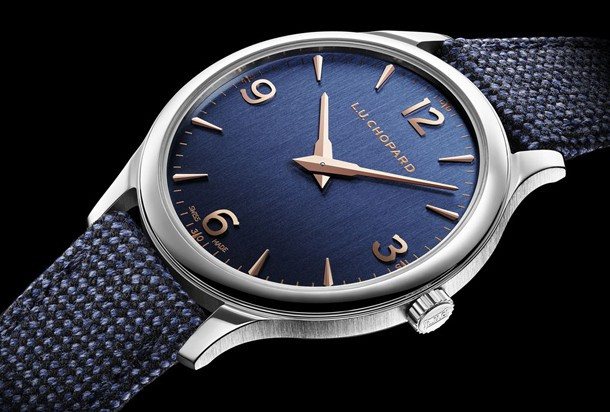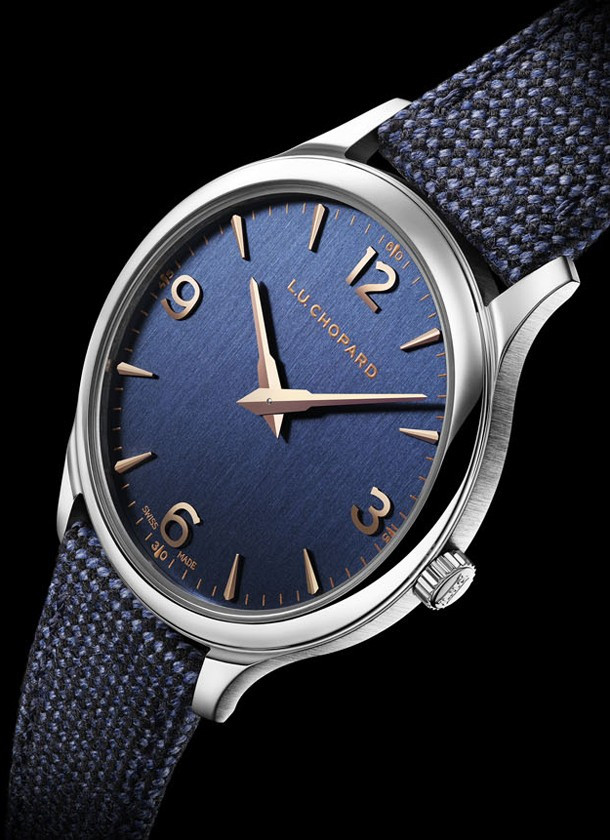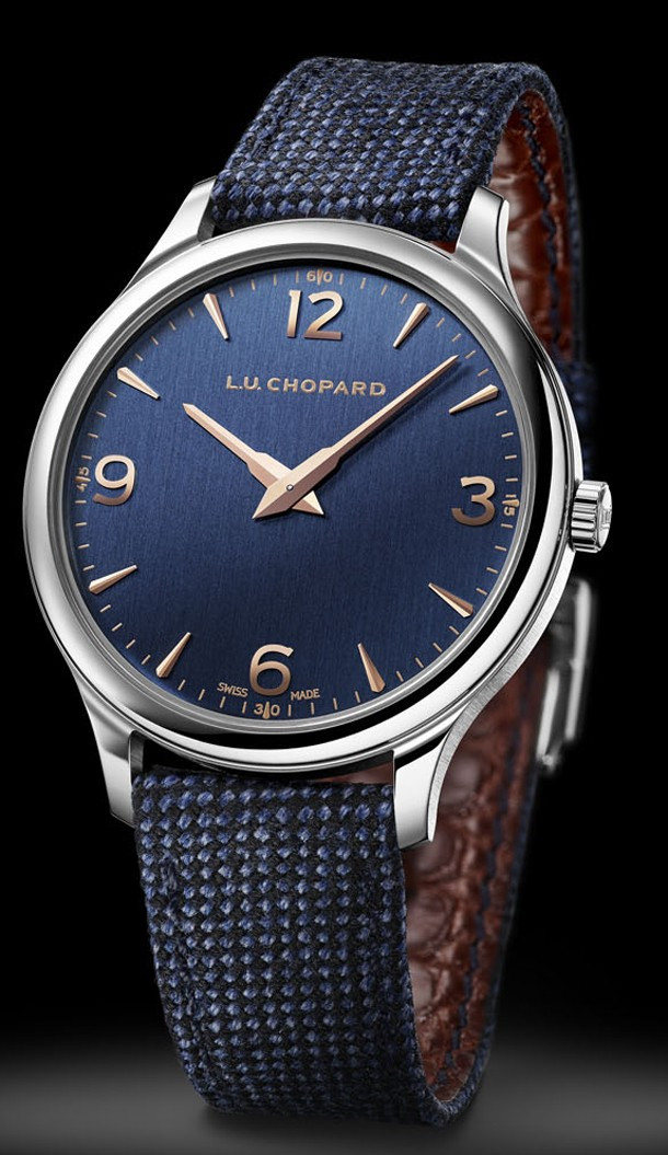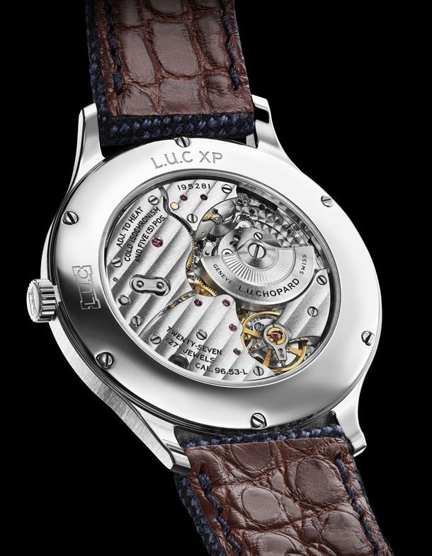 Модель L.U.C XP была представлена в корпусе из нержавеющей стали с матовым синим циферблатом, контрастными золотыми акцентами на циферблате и синим кашемировым ремешком. Размер стального корпуса составляет 40 х 7.2 мм. Полированный безель и поверхность ушек контрастирует с элегантным сатинированием циферблата. Благодаря своему глубокому вертикальному сатинированному покрытию, которое перекликается с отделкой по бокам корпуса, синий циферблат обеспечивает идеально матовый фон для накладных конусообразных часовых меток и арабских цифр на 12, 3, 6 и 9 часах. Калибр 96.53-L – это мануфактурный автоматический механизм с вольфрамовым микротором. Ультратонкий механизм высотой всего 3.3 мм. Работая на частоте 28 800 пк/час, механизм оснащен запатентованной фирменной технологией Twin® в виде двух уложенных друг на друга цилиндров с пружинами, обеспечивая запас хода 58 часов. Мосты украшены Côtes de Genève и имеют красиво скошенные края, а на роторе и мостах – гравировка черными надписями. Часы поставляются на синем шерстяном ремешке Merino с коричневой кожаной подкладкой.