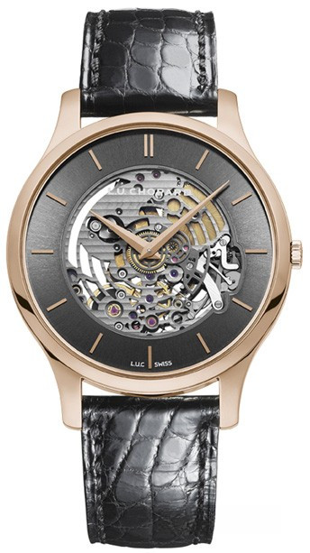 В основу часов L.U.C XP Skeletec из розового золота 750 пробы, ставших символом изобретательности часовых мастеров, лег первый скелетонизированный часовой механизм Chopard Manufacture. В ультратонкий корпус помещен видимый сквозь скелетонизированный циферблат грифельного цвета эталон точности и надежности – часовой механизм L.U.C 96.17-S с автоматическим подзаводом, «сердце» которого бьется с частотой 28 800 полуколебаний в час. Эти эксклюзивные часы выпущены ограниченной серией из 288 экземпляров.