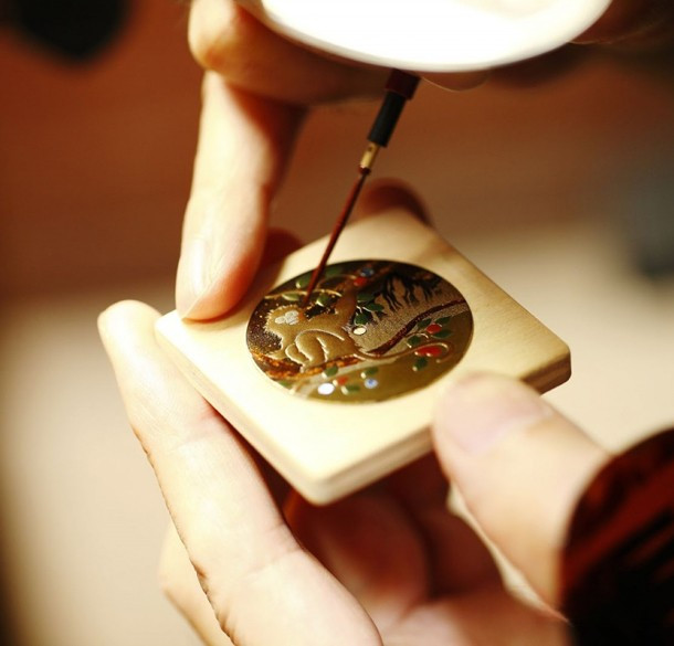 серый с золотистым, мотив 'обезьяна', японский лак уруши