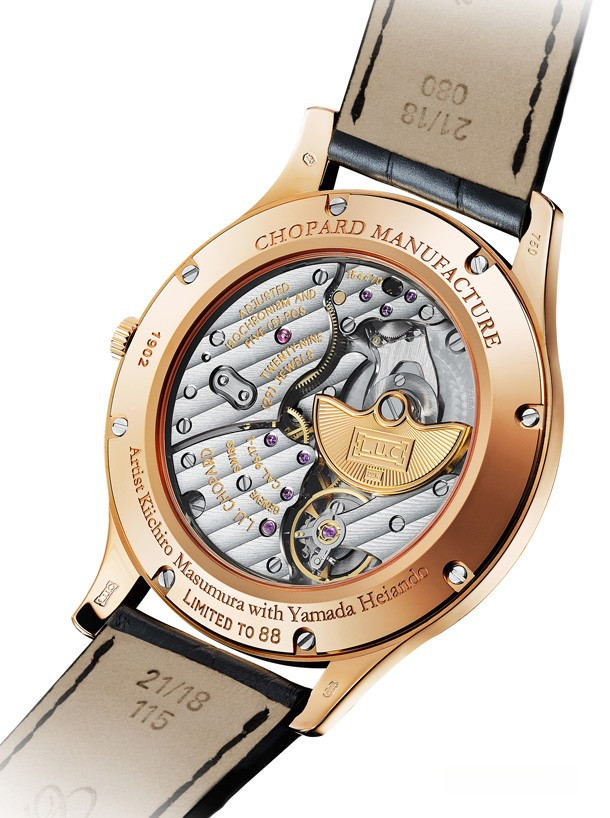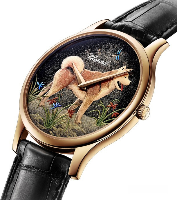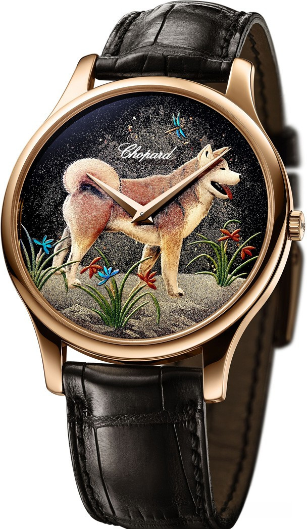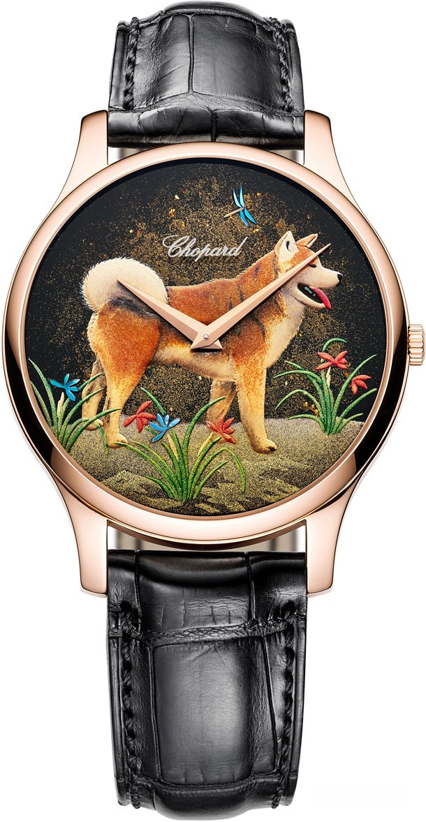 Официально провозглашенный «живым национальным достоянием» Японии, художник Кииширо Масумура создал для Chopard уникальный циферблат с использованием традиционных лаковых техник уруси и маки-е. Сочетая древнее искусство с высшим уровенем швейцарского часового мастерства, это выдающееся произведение представляет изображение Собаки – одного из символов китайского гороскопа, олицетворяющего божественного посланника, который является лучшим спутником человека. Великолепным обрамлением миниатюре служит изящный корпус ультратонких часов L.U.C XP из розового золота 750 пробы, оснащенных механизмом L.U.C 96.17-L с автоматическим подзаводом. Эксклюзивная ограниченная серия из 88 шт.