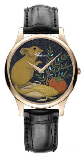 Официально провозглашенный «живым национальным достоянием» Японии, художник Кииширо Масумура создал для Chopard уникальный циферблат с использованием традиционных лаковых техник уруси и маки-е. Сочетая древнее искусство с высшим уровенем швейцарского часового мастерства, это выдающееся произведение представляет изображение Крысы – одного из символов китайского гороскопа. Великолепным обрамлением миниатюре служит изящный корпус ультратонких часов L.U.C XP из розового золота 750 пробы, оснащенных механизмом L.U.C 96.17-L с автоматическим подзаводом. Эксклюзивная ограниченная серия из 88 шт.
