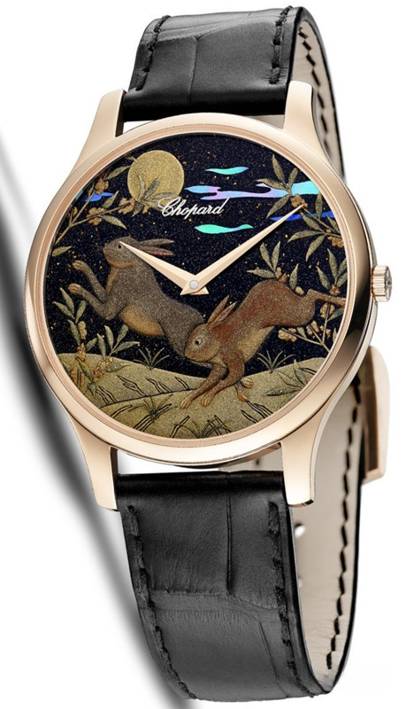 Официально провозглашенный «живым национальным достоянием» Японии, художник Кииширо Масумура создал для Chopard уникальный циферблат с использованием традиционных лаковых техник уруси и маки-е. Великолепным обрамлением синему циферблату служит изящный корпус ультратонких часов L.U.C XP из розового золота 18к, оснащенных механизмом L.U.C 96.17-L с автоматическим подзаводом. Эксклюзивная ограниченная серия из 88 шт.
