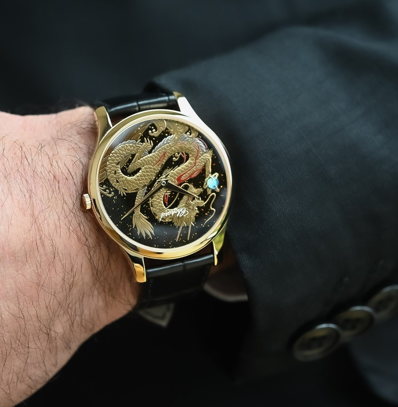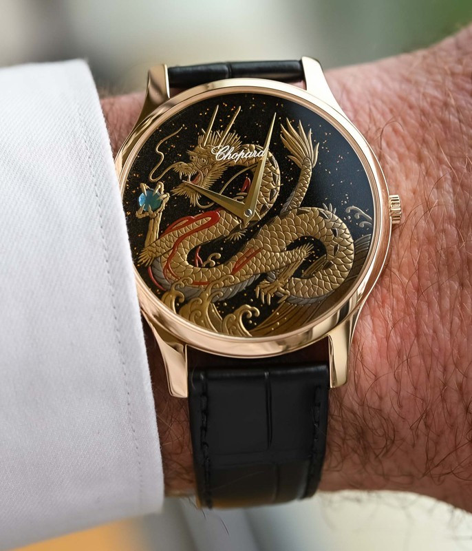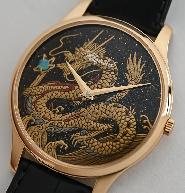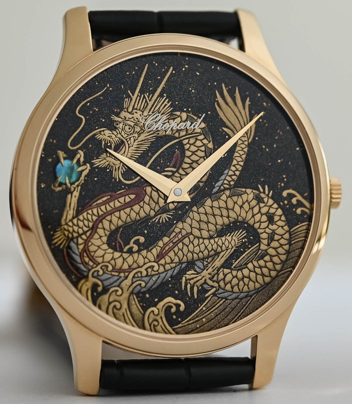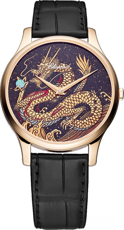 Официально провозглашенный «живым национальным достоянием» Японии, художник Кииширо Масумура создал для Chopard уникальный циферблат с использованием традиционных лаковых техник уруси и маки-е. Великолепным обрамлением фиолетовому циферблату служит изящный корпус ультратонких часов L.U.C XP из розового золота 18к, оснащенных механизмом L.U.C 96.17-L с автоматическим подзаводом. Эксклюзивная ограниченная серия из 88 шт.