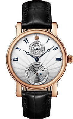 Внутри корпуса из розового золота 18к находится автоматический механизм CDK 7386 с запасом хода 96 часов, содержит усложнение - модуль планетария. Функции: часы, минуты, дата, месяц, планетарий. Самый маленький планетарий в мире показывает Меркурий, Венеру, Землю, Марс, Юпитер и Сатурн, вращающиеся вокруг Солнца. Диаметр корпуса составляет 40 мм, сапфировое стекло покрывает циферблат, сапфировое стекло установлено на задней крышке корпуса. Циферблат серебристый гильошированный. Черный ремешок из кожи аллигатора. Застежка из розового золота 18к с гравировкой логотипа мануфактуры.
