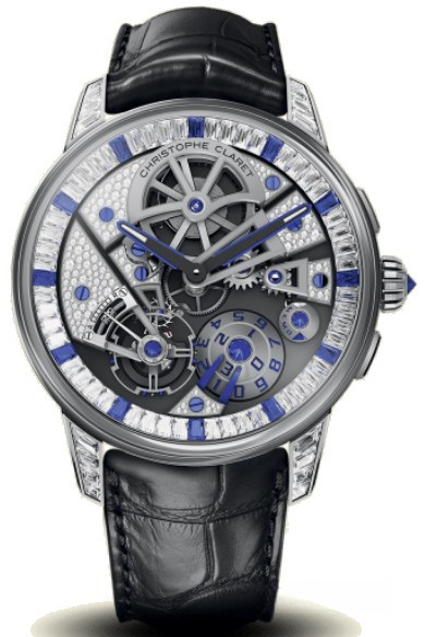 водонепроницаемость 30 м, корпус инкрустирован белыми багетными бриллиантами и синими сапфирами, серия ограничена (28 шт.)