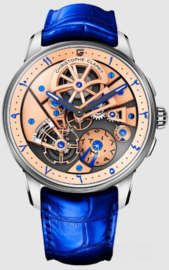 Часы Christophe Claret Maestro Date представлены в корпусе из титана размером 42 х 16.06 мм и водонепроницаемостью 30 метров. Внутри корпуса установлен механизм с ручным заводом, Калибр DMC16 с запасом хода 7 дней. На золотистом циферблате отображаются часы, минуты, дата. Часы поставляются на ремешке из кожи аллигатора с титановой застежкой. Серия ограничена - 17 шт.