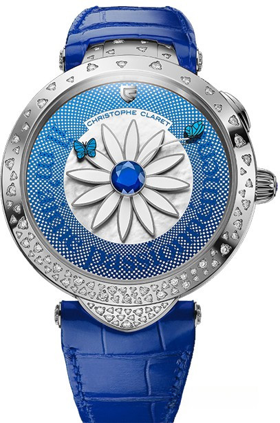 Часы Christophe Claret Marguerite представлены в корпусе из белого золота 18к размером 42.5 х 12.07 мм и водонепроницаемостью до 30 метров. Внутри корпуса установлен автоматический механизм MT115 с запасом хода 72 часа. На белом жемчужном циферблате отображаются часы, минуты. Часы комплектуются ремешком из кожи аллигатора с вставкой из белого золота 18к. Корпус часов инкрустирован белыми бриллиантами. Часы выпущены ограниченной серией 30 шт. На циферблате размещена романтическая надпись. На задней стороне корпуса можно играть в игру "любит-не любит" при помощи ротора.