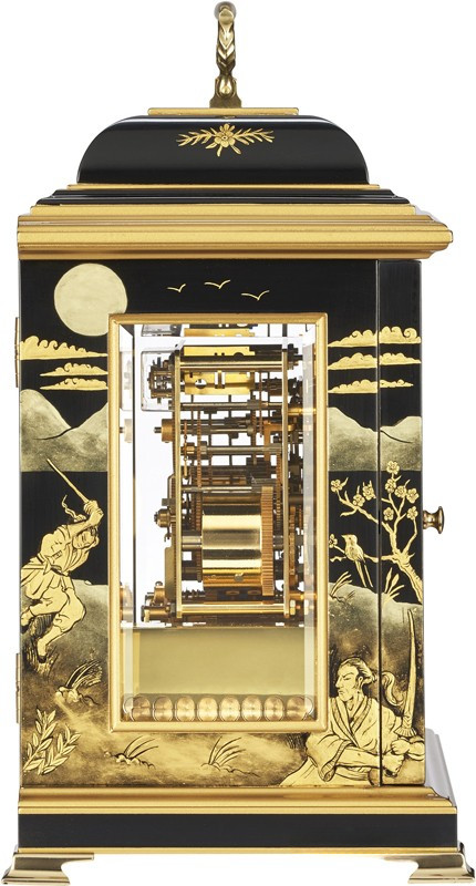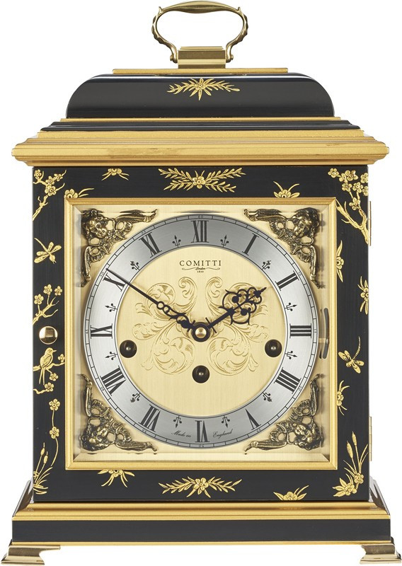 Классические каминные часы Comitti London Est.1850 Samurai Gold с тройным курантом. Черный лакированный корпус с глянцевой отделкой, ручная роспись, эксклюзивные произведения самурая Chinoisere на сусальном золоте. Ограниченная серия 50 штук по всему миру, подписана художником. Высота 29 см. Ширина 21 см. Глубина 16 см. Вес 5,5 кг. Часы упакованы в коробку из красного дерева. Производство Англия.