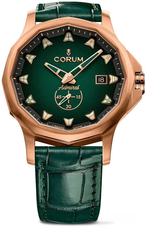 Часы Corum Admiral`s Cup Legend 42 выпущены в корпусе из розового золота 18к размером 42 х 10 мм и водонепроницаемостью 50 м. Внутри корпуса установлен автоматический Калибр CO 395 с запасом хода 42 часа. На зеленом циферблате отображаются часы, минуты, секунды, дата. Часы комплектуются ремешком из кожи аллигатора с вставкой из розового золота 18к. Серия ограничена - 100 шт.