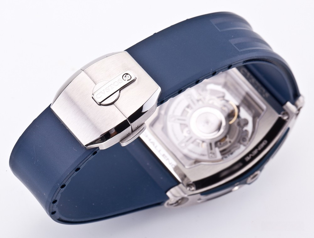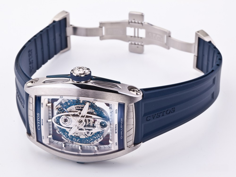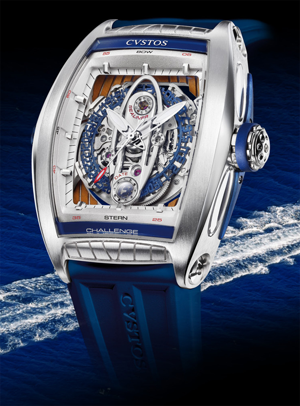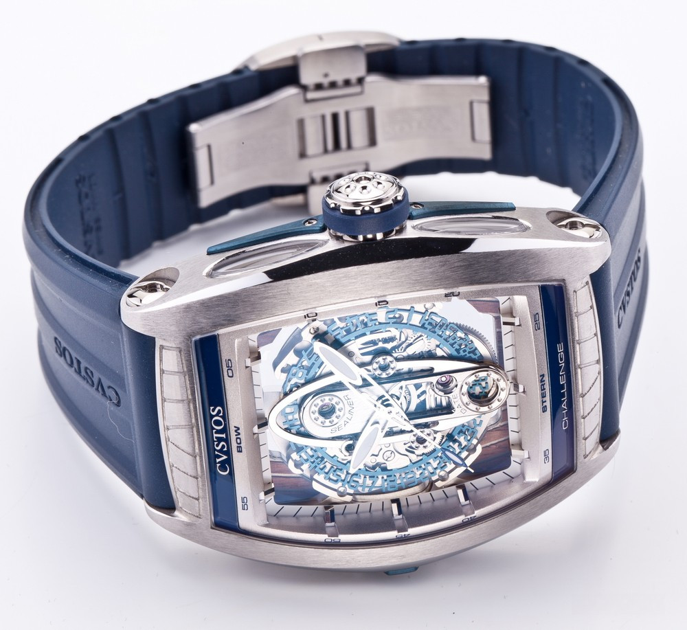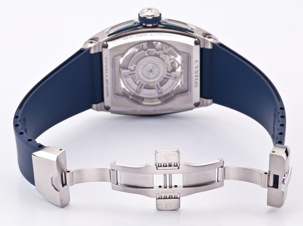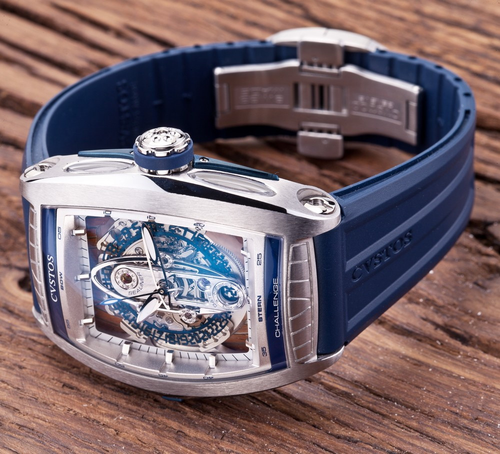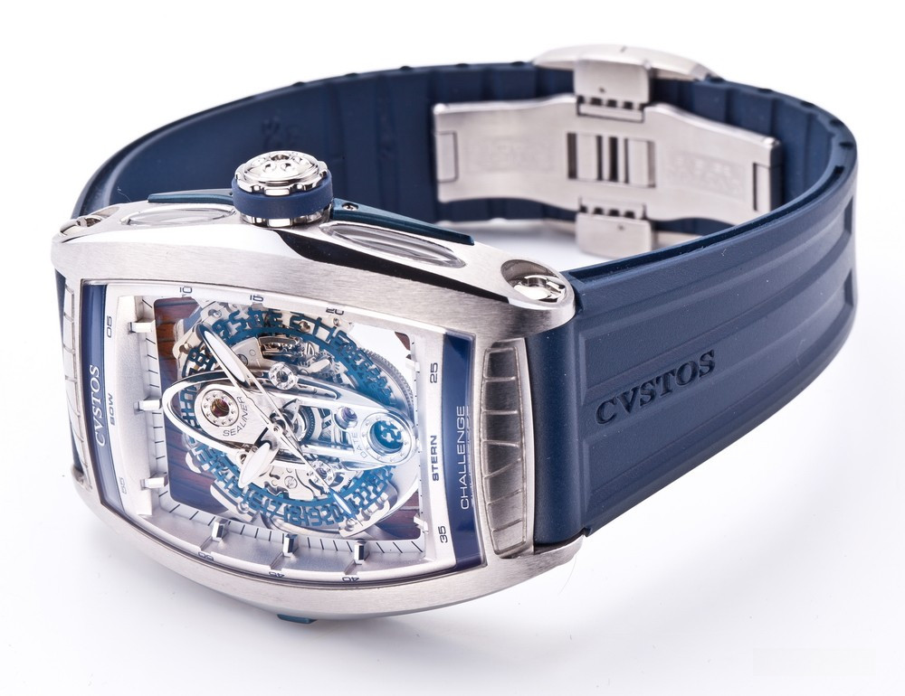 Спортывные часы Cvstos Challenge Sea-Liner Sea-Liner SS изготовлены из нержавеющей стали с синим PVD-покрытием , диаметром 41 х 53,7 и толщиной 13,35 мм. Уровень водонепроницаемости до 100м. Циферблат скелетирован, чтобы можно было увидеть, как работает прекрасно отделанный автоматический механизм CVS350 с автоподзаводом и запасом хода 42 часа. Частота колебаний 28,800 пк/ч. Скелетированный диск даты удачно контрастирует с фоном из тикового дерева. Центральные стрелки часов, минут и секунд покрыты люминесцентным составом. Роскошный морской стиль модели, дополняет каучуковый ремешок синего цвета с раскладной застежкой из нержавеющей стали. Защищает циферблат сапфировое стекло с двойным антибликовым покрытием, для более четкой видимости даже в очень солнечную погоду. Модель Cvstos Sea-Liner являются воплощением элегантности и дерзкого спортивного характера, сочетающей в себе мир яхт и морской стихии. Часы представлены в элегантной фирменной коробке с документами.