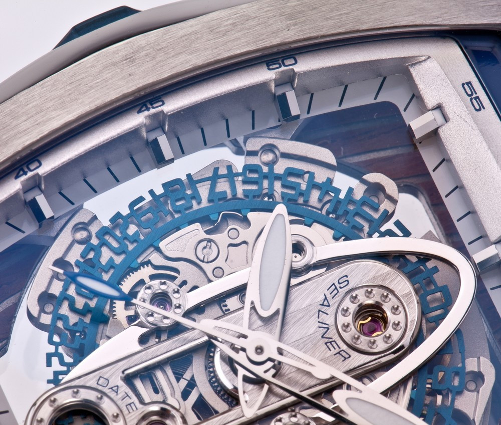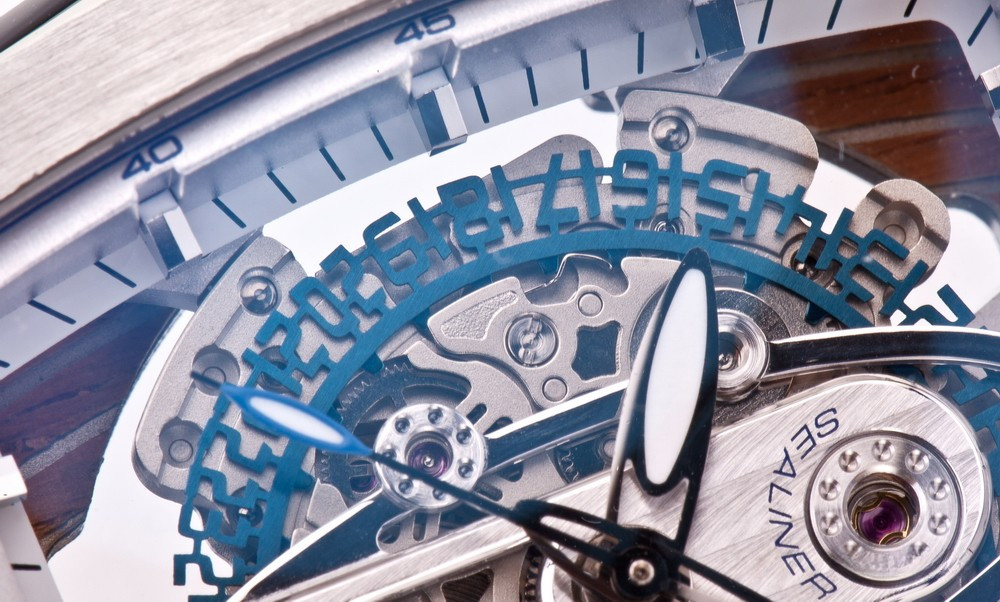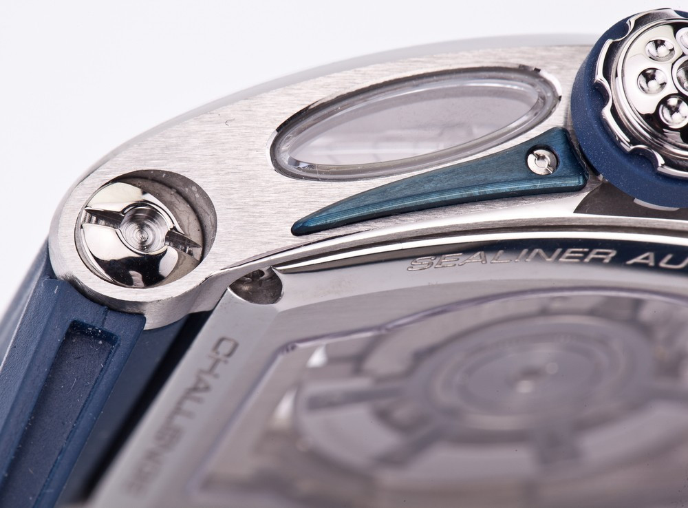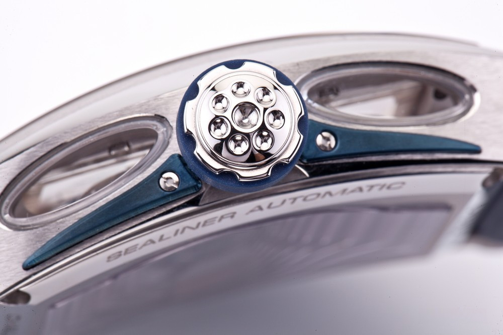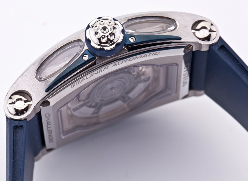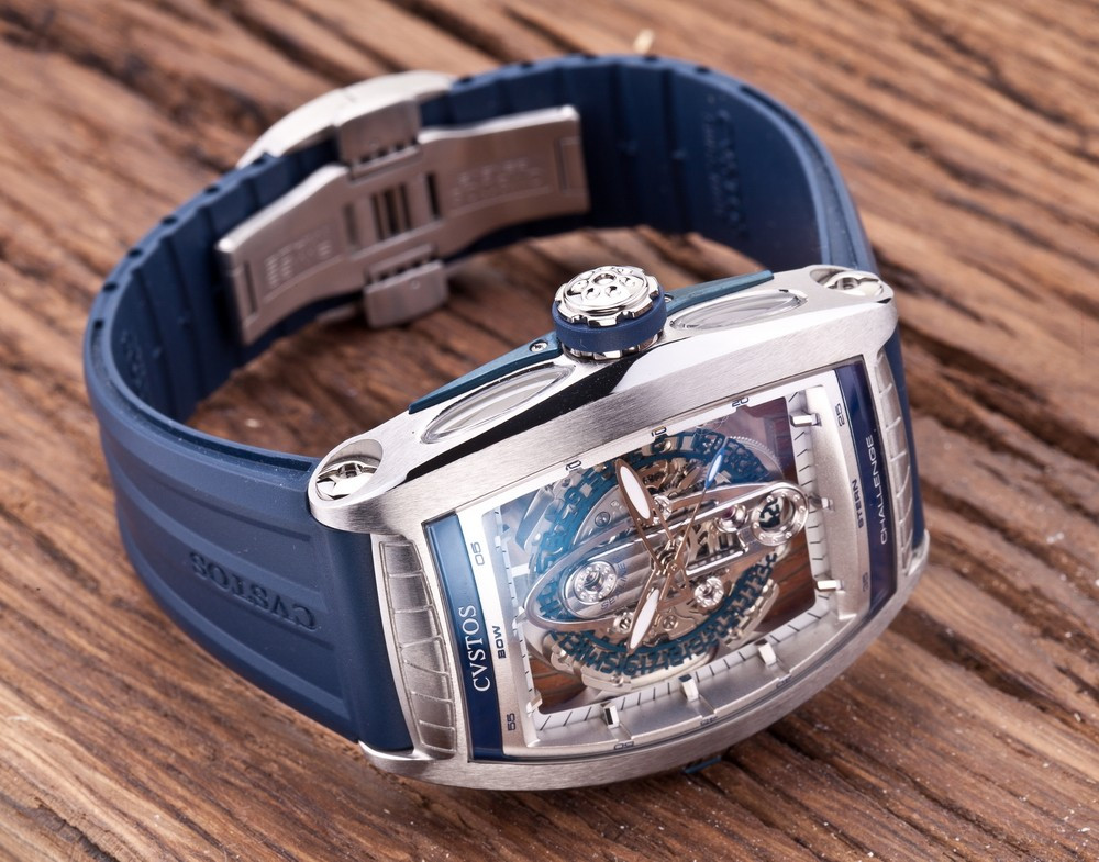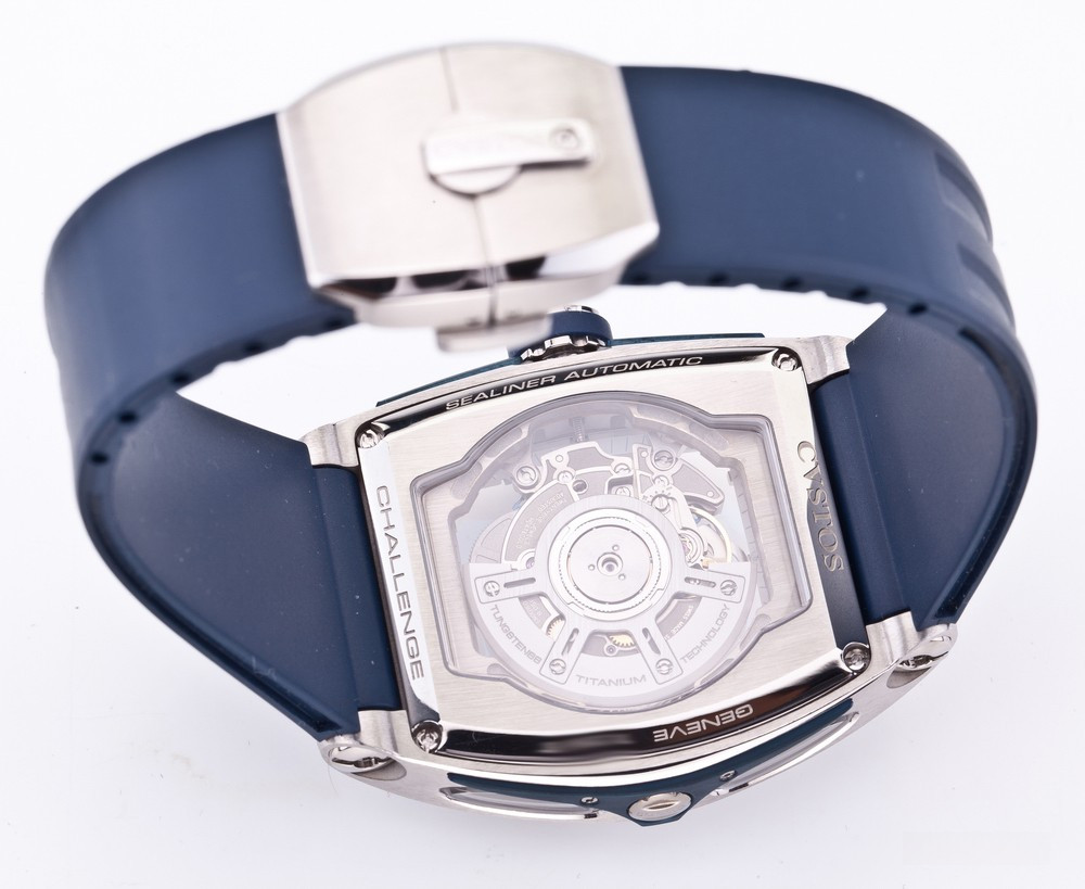Спортывные часы Cvstos Challenge Sea-Liner Sea-Liner SS изготовлены из нержавеющей стали с синим PVD-покрытием , диаметром 41 х 53,7 и толщиной 13,35 мм. Уровень водонепроницаемости до 100м. Циферблат скелетирован, чтобы можно было увидеть, как работает прекрасно отделанный автоматический механизм CVS350 с автоподзаводом и запасом хода 42 часа. Частота колебаний 28,800 пк/ч. Скелетированный диск даты удачно контрастирует с фоном из тикового дерева. Центральные стрелки часов, минут и секунд покрыты люминесцентным составом. Роскошный морской стиль модели, дополняет каучуковый ремешок синего цвета с раскладной застежкой из нержавеющей стали. Защищает циферблат сапфировое стекло с двойным антибликовым покрытием, для более четкой видимости даже в очень солнечную погоду. Модель Cvstos Sea-Liner являются воплощением элегантности и дерзкого спортивного характера, сочетающей в себе мир яхт и морской стихии. Часы представлены в элегантной фирменной коробке с документами.