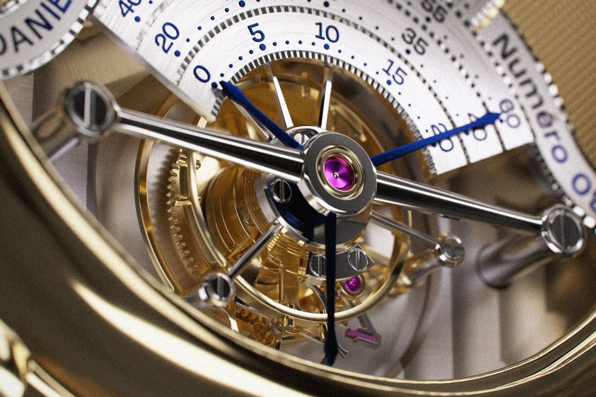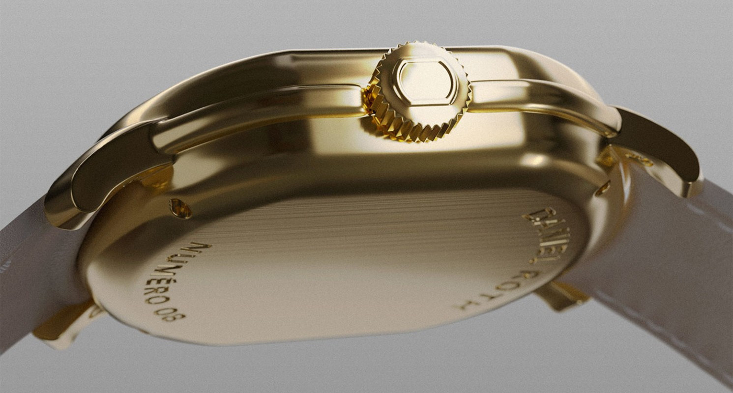 Часы Daniel Roth Tourbillon Souscription представлены в корпусе размером 38.6 х 35.5 х 9.2 мм из желтого золота 18к водонепроницаемостью 30 метров. Внутри корпуса установлен механизм с ручным заводом, Калибр DR001, обладающий запасом хода 80 часов. На золотистом с белым циферблате отображаются часы, минуты, секунды, турбийон. Часы поставляются на кожаном ремешке с золотой застежкой. Серия ограничена - 20 шт.
