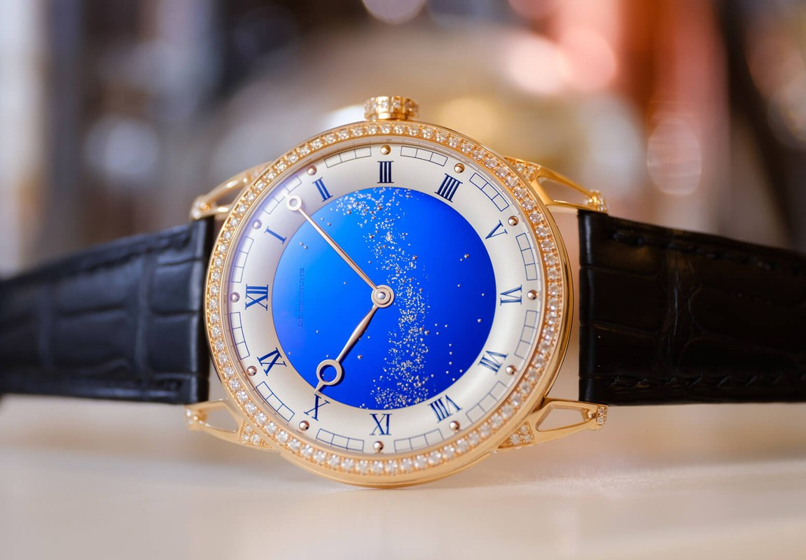 Часы De Bethune DB25 Starry Varius представлены в корпусе из розового золота 18к размером 43 мм и водонепроницаемостью 30 метров. Внутри корпуса установлен механизм с ручным заводом с запасом хода 6 дней. На синем циферблате отображаются часы, минуты. Часы поставляются на ремешке из кожи аллигатора с золотой застежкой. Корпус инкрустирован белыми бриллиантами.