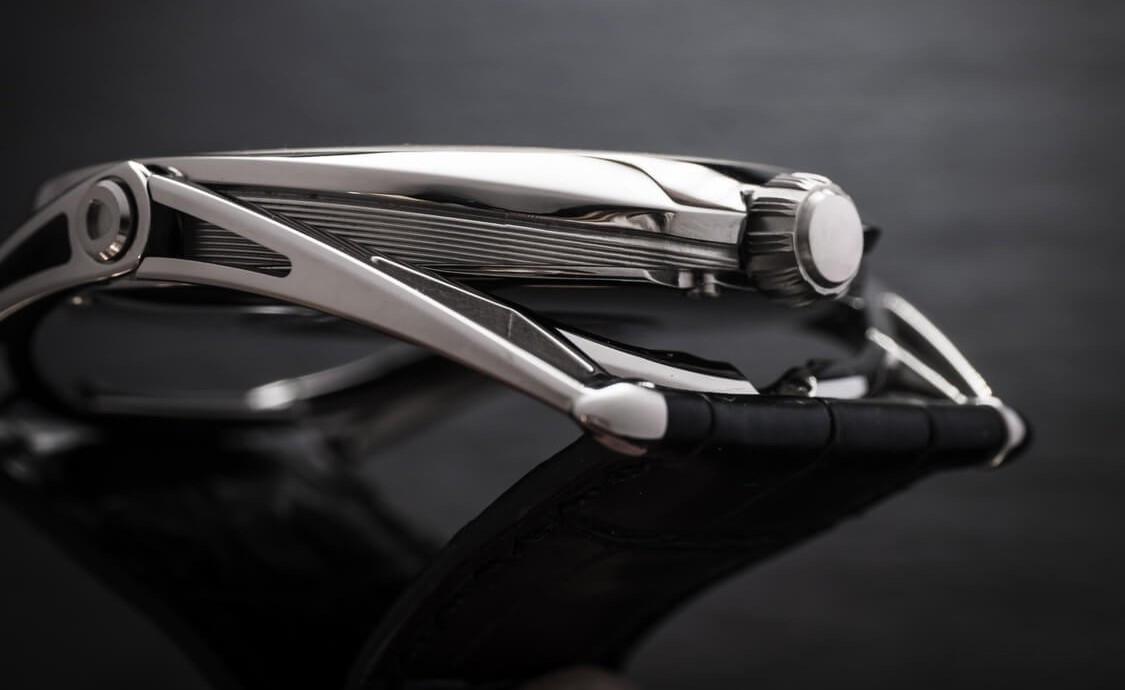 Часы De Bethune DB28 XP представлены в корпусе из титана размером 43 х 7.2 мм водонепроницаемостью 30 метров. Внутри корпуса установлен механизм с ручным заводом, обладающий запасом хода 6 дней. На серебристом циферблате отображаются часы, минуты. Часы поставляются на ремешке из кожи аллигатора с титановой застежкой.