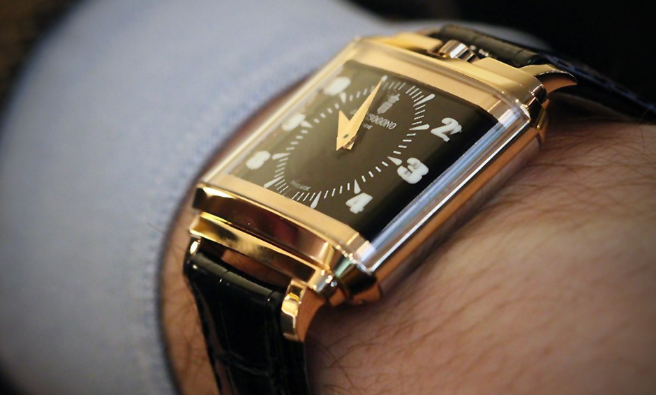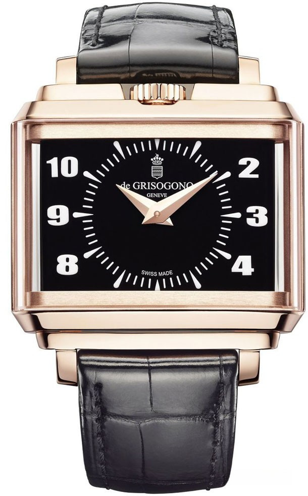 Компания de Grisogono в очередной раз демонстрирует владение мастерством преображения эстетических принципов и непреходящей элегантности прошлого в настоящее. Лаконичный дизайн, отвечающий вкусам современных успешных людей, пронизан завораживающими образами стиля пятидесятых. de Grisogono удалось решить задачу «квадратуры круга» и представить новые часы, наполненные мудростью прошлого. Новая модель часов изначально создана для мужчин, но, возможно, девушки также найдут интересными New Retro, например в качестве прямоугольной версии oversized-часов, чтобы подчеркнуть хрупкость запястья. На выбор представлено три варианта корпуса цвета золота: белое, черненое или розовое. Для модели в розовом золоте можно выбрать оттенок циферблата — предусмотрен не только канонический для de Grisogono черный, но и кремово-розовый и фисташковый варианты.