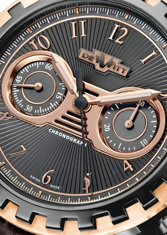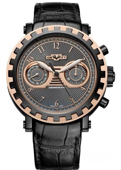 Мужские часы DeWitt Academia Chronostream AC.6005.053A.M091 представляют функцию хронографа. Накопители хронографа расположены симметрично на 3-х и 9-ти часах. Корпус модели диаметром 43 мм изготовлен из розового золота 18к и тантала, водонепроницаемость составляет 30 метров. На фоне серого гильошированного циферблата под сапфировым стеклом отображаются часы, минуты и секунды. Внутри корпуса установлен автоматический механизм, произведенный на мануфактуре DeWitt, обладающий запасом хода 48 часов. Часы комплектуются черым ремешком из кожи аллигатора с застежкой из розового золота 18к.