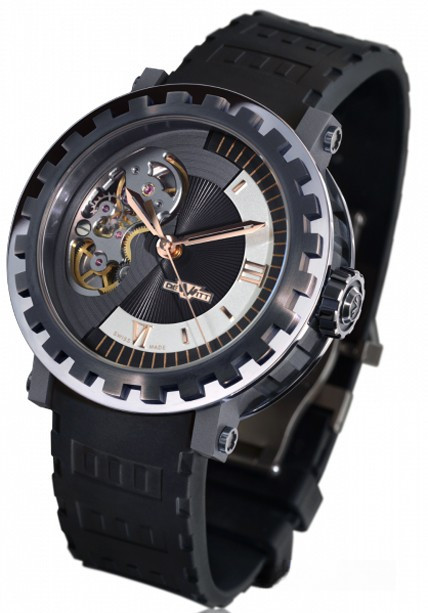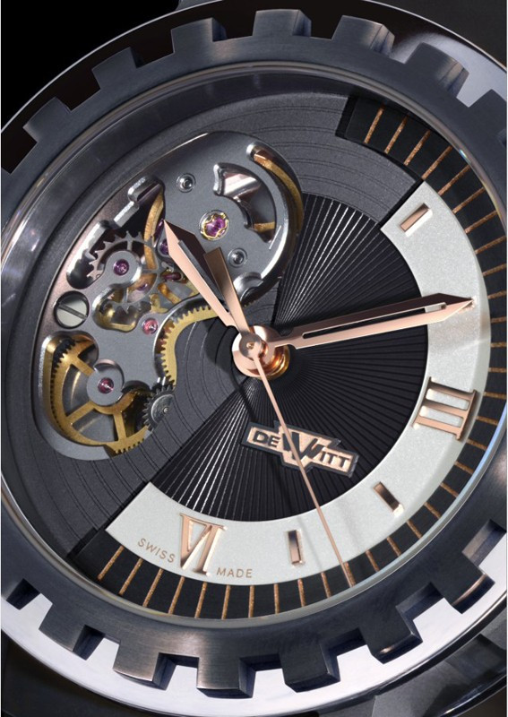 Мужские часы DeWitt Academia Mirabilis AC.MI.004 открывают вид на часть механизма. Апертура расположена на 9-ти часах. Корпус модели диаметром 44 мм изготовлен из титана и белого золота 18к, водонепроницаемость составляет 30 метров. На фоне черного гильошированного с серебристым циферблата под сапфировым стеклом отображаются часы, минуты и секунды. Внутри корпуса установлен автоматический механизм, произведенный на мануфактуре DeWitt, обладающий запасом хода 48 часов. Часы комплектуются черым каучуковым ремешком с титановой застежкой.