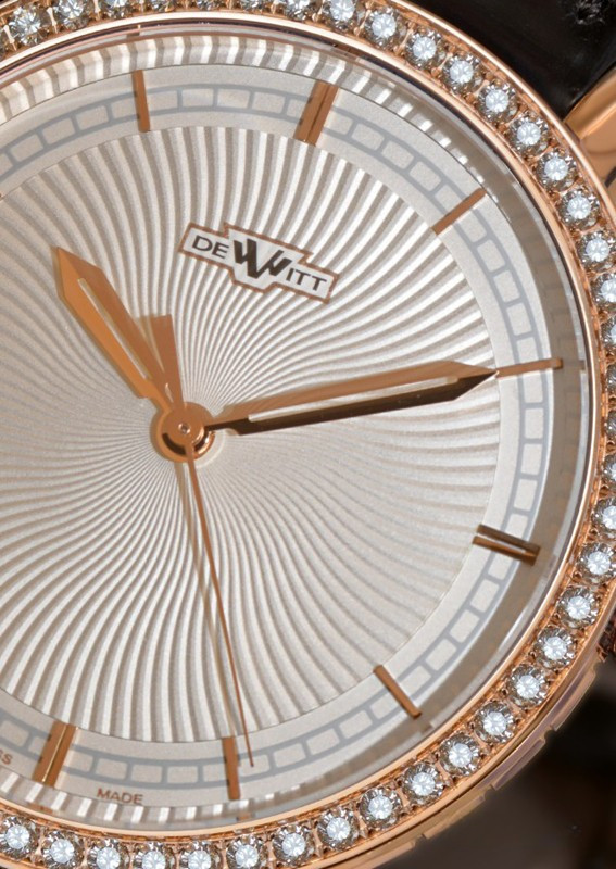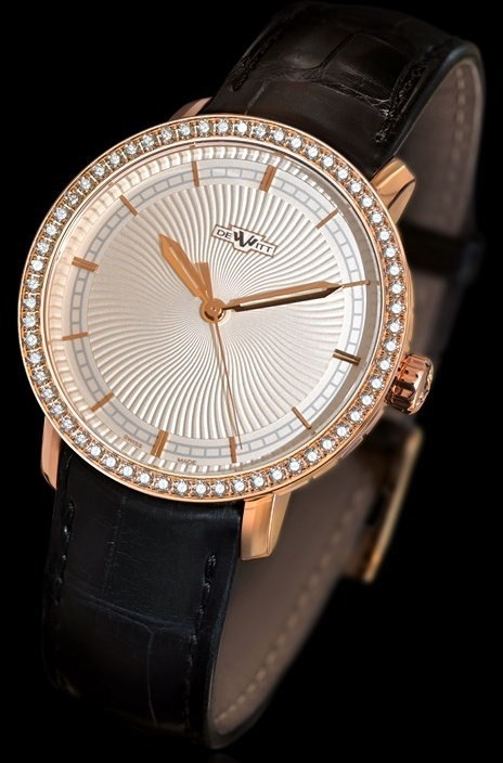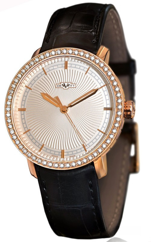 Мужские часы DeWitt Classic HMS Jewellery CLA.HMS/102.002 представлены в классическом круглом корпусе диаметром 40 мм из розового золота 18к, водонепроницаемость составляет 30 метров. На фоне белого гильошированного циферблата под сапфировым стеклом отображаются часы, минуты и секунды. Внутри корпуса установлен автоматический механизм, произведенный на мануфактуре DeWitt, обладающий запасом хода 42 часа. Безель из 60-ти белых бриллиантов общим весом 1.39 ct. Часы комплектуются черным ремешком из кожи аллигатора с застежкой из розового золота 18к.
