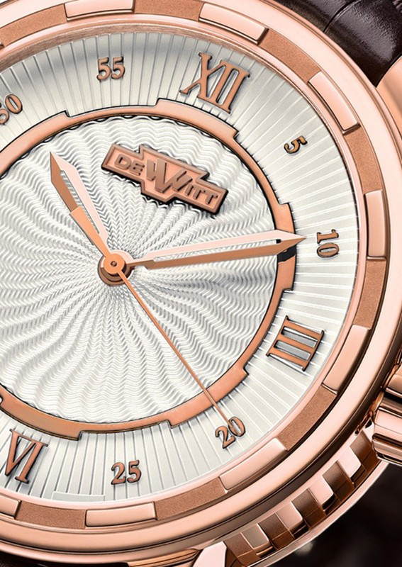 Twenty-8-Eight Automatic – это часы, воплощающие идею изысканности и целостности. Два вида орнамента делят гильошированный циферблат часов на две зоны. Извилистые линии центрального рисунка напоминают языки пламени. При малейшем движении руки они оживляют циферблат красивой игрой света. Второй орнамент нанесен по окружности циферблата и представляет собой абсолютно прямые солнечные лучи, упорядочивающие дизайн. Благодаря большим римским цифрам, расположенным в четырех стратегических точках, и маленьким арабским цифрам, нанесенным через пятиминутные интервалы, время никогда еще не читалось так легко. Часы Twenty-8-Eight Automatic выпущены в корпусе диаметром 43 мм из розового золота 18к. Внутри часов Twenty-8-Eight Automatic находится компактный и надежный часовой механизм, показывающий время с помощью часовой, минутной и центральной секундной стрелок. Часовая и минутная стрелки имеют форму обоюдоострого меча с прорезью посредине. Элегантная тонкая секундная стрелка грациозно скользит по циферблату. Декоративная отделка часов Twenty-8-Eight Automatic отвечает самым высоким стандартам Мануфактуры DeWitt и включает в себя такие приемы, как сатинирование, полировка, снятие фасок. Качество окончательной отделки также позволяет оценить сапфировое стекло задней крышки, сквозь которое хорошо виден великолепный ротор автоматического завода собственной разработки DeWitt. Заводная коронка и золотая застежка ремешка отмечены миниатюрной монограммой «W». Часы комплектуются ремешком из кожи аллигатора с застежкой из розового золота 18к.
