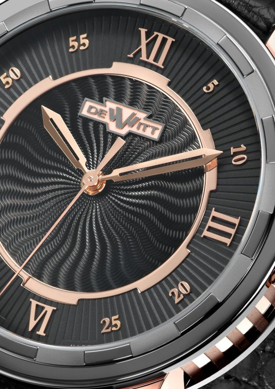 Twenty-8-Eight Automatic – это часы, воплощающие идею изысканности и целостности. Два вида орнамента делят гильошированный циферблат часов на две зоны. Извилистые линии центрального рисунка напоминают языки пламени. При малейшем движении руки они оживляют циферблат красивой игрой света. Второй орнамент нанесен по окружности циферблата и представляет собой абсолютно прямые солнечные лучи, упорядочивающие дизайн. Благодаря большим римским цифрам, расположенным в четырех стратегических точках, и маленьким арабским цифрам, нанесенным через пятиминутные интервалы, время никогда еще не читалось так легко. Часы Twenty-8-Eight Automatic выпущены в корпусе диаметром 43 мм из розового золота 18к. Внутри часов Twenty-8-Eight Automatic находится компактный и надежный часовой механизм, показывающий время с помощью часовой, минутной и центральной секундной стрелок. Часовая и минутная стрелки имеют форму обоюдоострого меча с прорезью посредине. Элегантная тонкая секундная стрелка грациозно скользит по циферблату. Декоративная отделка часов Twenty-8-Eight Automatic отвечает самым высоким стандартам Мануфактуры DeWitt и включает в себя такие приемы, как сатинирование, полировка, снятие фасок. Качество окончательной отделки также позволяет оценить сапфировое стекло задней крышки, сквозь которое хорошо виден великолепный ротор автоматического завода собственной разработки DeWitt. Заводная коронка и золотая застежка ремешка отмечены миниатюрной монограммой «W». Часы комплектуются ремешком из кожи аллигатора с застежкой из розового золота 18к.