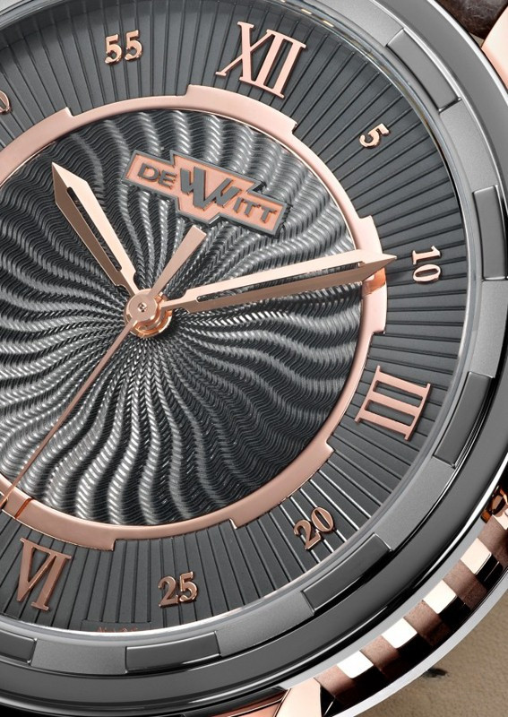 Twenty-8-Eight Automatic – это часы, воплощающие идею изысканности и целостности. Два вида орнамента делят гильошированный циферблат часов на две зоны. Извилистые линии центрального рисунка напоминают языки пламени. При малейшем движении руки они оживляют циферблат красивой игрой света. Второй орнамент нанесен по окружности циферблата и представляет собой абсолютно прямые солнечные лучи, упорядочивающие дизайн. Благодаря большим римским цифрам, расположенным в четырех стратегических точках, и маленьким арабским цифрам, нанесенным через пятиминутные интервалы, время никогда еще не читалось так легко. Часы Twenty-8-Eight Automatic выпущены в корпусе диаметром 43 мм из розового золота 18к. Внутри часов Twenty-8-Eight Automatic находится компактный и надежный часовой механизм, показывающий время с помощью часовой, минутной и центральной секундной стрелок. Часовая и минутная стрелки имеют форму обоюдоострого меча с прорезью посредине. Элегантная тонкая секундная стрелка грациозно скользит по циферблату. Декоративная отделка часов Twenty-8-Eight Automatic отвечает самым высоким стандартам Мануфактуры DeWitt и включает в себя такие приемы, как сатинирование, полировка, снятие фасок. Качество окончательной отделки также позволяет оценить сапфировое стекло задней крышки, сквозь которое хорошо виден великолепный ротор автоматического завода собственной разработки DeWitt. Заводная коронка и золотая застежка ремешка отмечены миниатюрной монограммой «W». Часы комплектуются ремешком из кожи аллигатора с застежкой из розового золота 18к.