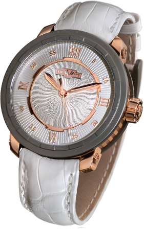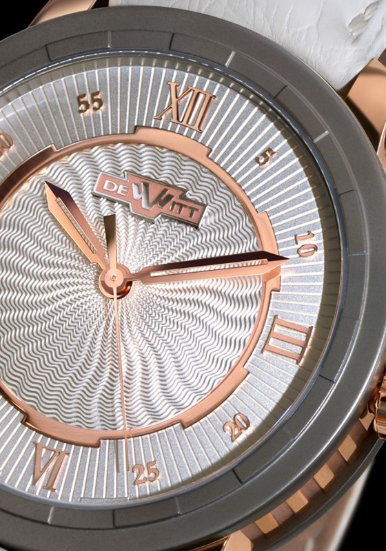 Twenty-8-Eight Automatic – это часы, воплощающие идею изысканности и целостности. Два вида орнамента делят гильошированный циферблат часов на две зоны. Извилистые линии центрального рисунка напоминают языки пламени. При малейшем движении руки они оживляют циферблат красивой игрой света. Второй орнамент нанесен по окружности циферблата и представляет собой абсолютно прямые солнечные лучи, упорядочивающие дизайн. Благодаря большим римским цифрам, расположенным в четырех стратегических точках, и маленьким арабским цифрам, нанесенным через пятиминутные интервалы, время никогда еще не читалось так легко. Часы Twenty-8-Eight Automatic выпущены в корпусе диаметром 43 мм из розового золота 18к. Внутри часов Twenty-8-Eight Automatic находится компактный и надежный часовой механизм, показывающий время с помощью часовой, минутной и центральной секундной стрелок. Часовая и минутная стрелки имеют форму обоюдоострого меча с прорезью посредине. Элегантная тонкая секундная стрелка грациозно скользит по циферблату. Декоративная отделка часов Twenty-8-Eight Automatic отвечает самым высоким стандартам Мануфактуры DeWitt и включает в себя такие приемы, как сатинирование, полировка, снятие фасок. Качество окончательной отделки также позволяет оценить сапфировое стекло задней крышки, сквозь которое хорошо виден великолепный ротор автоматического завода собственной разработки DeWitt. Заводная коронка и золотая застежка ремешка отмечены миниатюрной монограммой «W». Часы комплектуются ремешком из кожи аллигатора с застежкой из розового золота 18к.