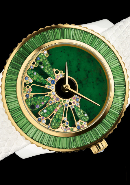 водонепроницаемость 50 м, безель из зеленых багетных цаворитов, серия ограничена (1 шт.)