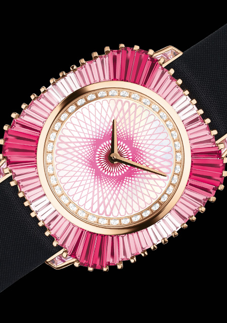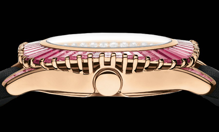 водонепроницаемость 50 м, корпус инкрустирован розовыми сапфирами