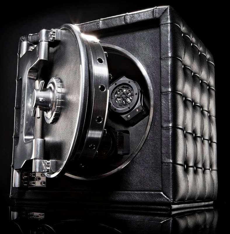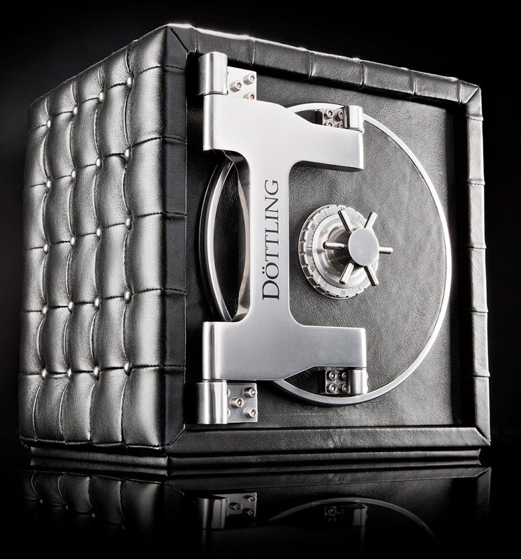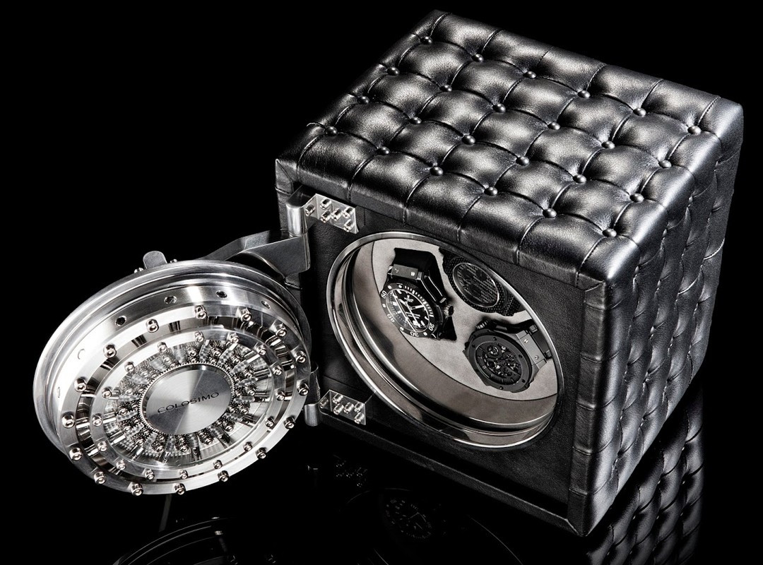 Сейф Doettling Colosimo The Spike представлен в корпусе из нержавеющей стали и кожи. Его дизайн вдохновлен известным брендом, производящим кожаные кресла. Размер сейфа 21 х 21 х 20 см, вес 14 кг. Внутри находится модуль для автоматического завода 3-х часов.