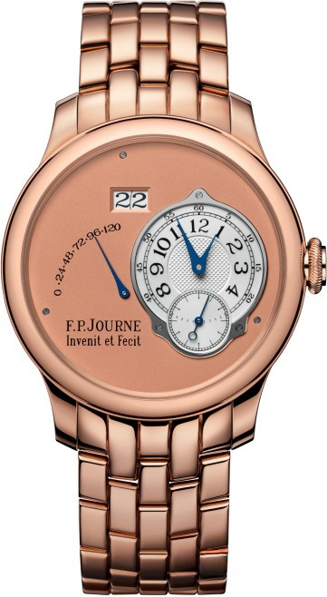 Часы F.P. Journe Octa Classique Automatique представлены в корпусе из розового золота 18к размером 40 х 10.7 мм водонепроницаемостью 30 метров. Внутри корпуса установлен автоматический механизм, Калибр 1300.3, обладающий запасом хода 160 часов. На золотистом циферблате отображаются часы, минуты, секунды, дата, запас хода. Часы комплектуются золотым браслетом.