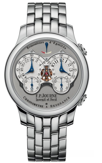 Спустя 20 лет после запуска Chronomètre à Résonance, F.P.Journe представил реконструкцию этой модели, одного из самых символических произведений французского маэстро. F.P.Journe Chronomètre à Résonance использует физический естественный резонанс для повышения точности и стабильности работы часов. Новый Chronomètre à Résonance имеет обновленный корпус с заводной головкой, расположенной на 2-х часах. Балансовая частота механизма составляет 21 600 пк/час, запас хода 42 часа. Часы представлены в корпусе из платины 950. Циферблат серебристый с узором гильоше Clous de Paris. Chronomètre à Résonance от F.P.Journe поставляется на платиновом браслете.