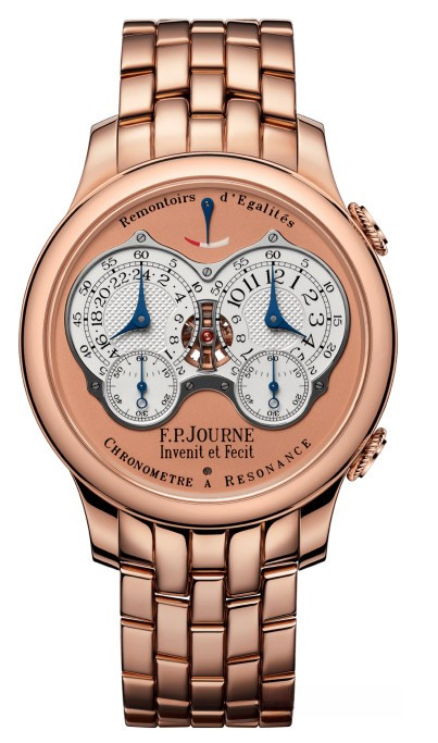 Спустя 20 лет после запуска Chronomètre à Résonance, F.P.Journe представил реконструкцию этой модели, одного из самых символических произведений французского маэстро. F.P.Journe Chronomètre à Résonance использует физический естественный резонанс для повышения точности и стабильности работы часов. Новый Chronomètre à Résonance имеет обновленный корпус с заводной головкой, расположенной на 2-х часах. Балансовая частота механизма составляет 21 600 пк/час, запас хода 42 часа. Часы представлены в корпусе из розового золота 18к. Циферблат серебристый с узором гильоше Clous de Paris. Chronomètre à Résonance от F.P.Journe поставляется на золотом браслете.